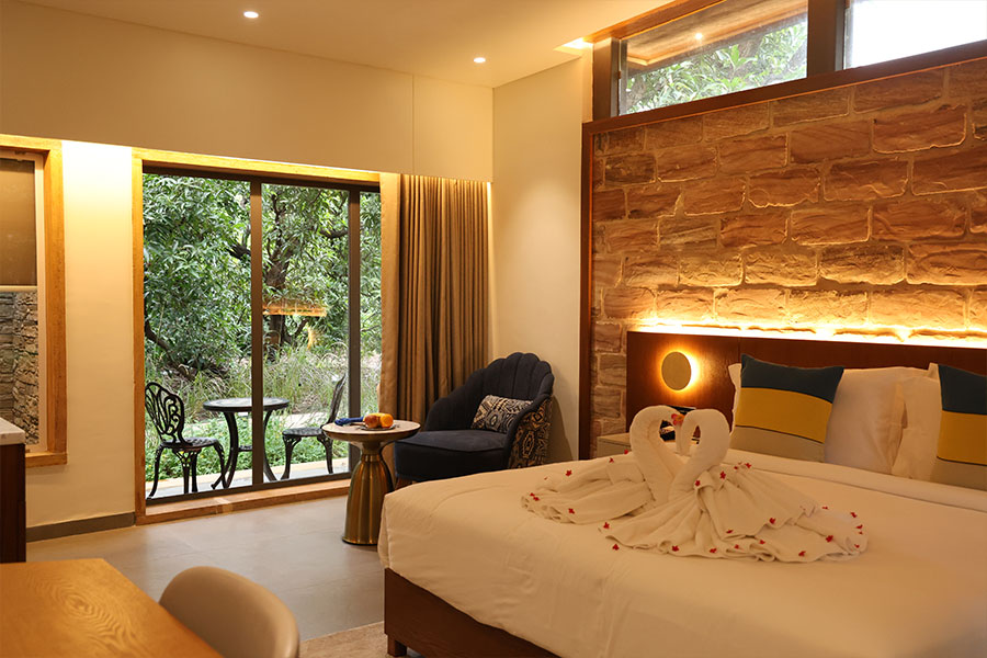 Trade city noise for lion roars! Mahavan Resort is a cozy haven tucked right next to Gir National Park. Experience the thrill of spotting the incredible Asiatic Lion, then retreat to our modern luxury. Enjoy the best local flavors and nature’s harmony. Unforgettable escapes await!